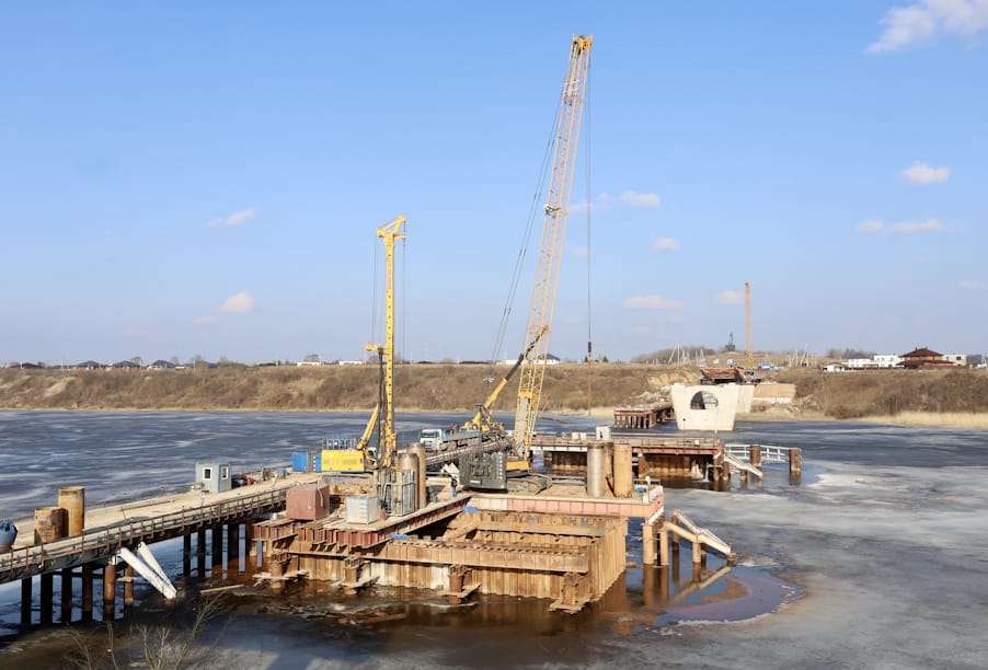 На данный момент уже устроены три монолитные опоры будущего моста, предварительно под них был заложен свайный фундамент. Сейчас мостостроители активно работают над возведением еще двух опор. Всего их будет шесть (четыре русловые и две береговые).