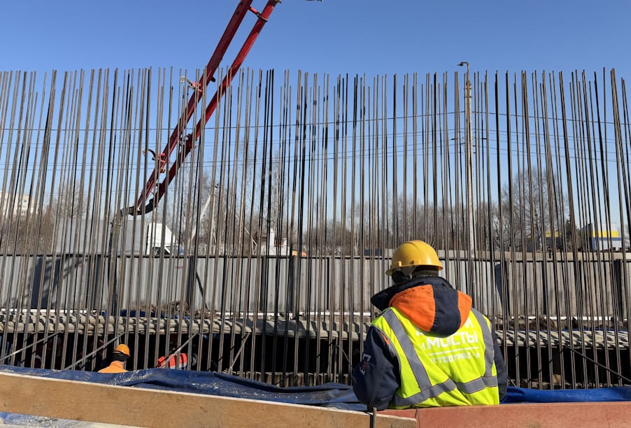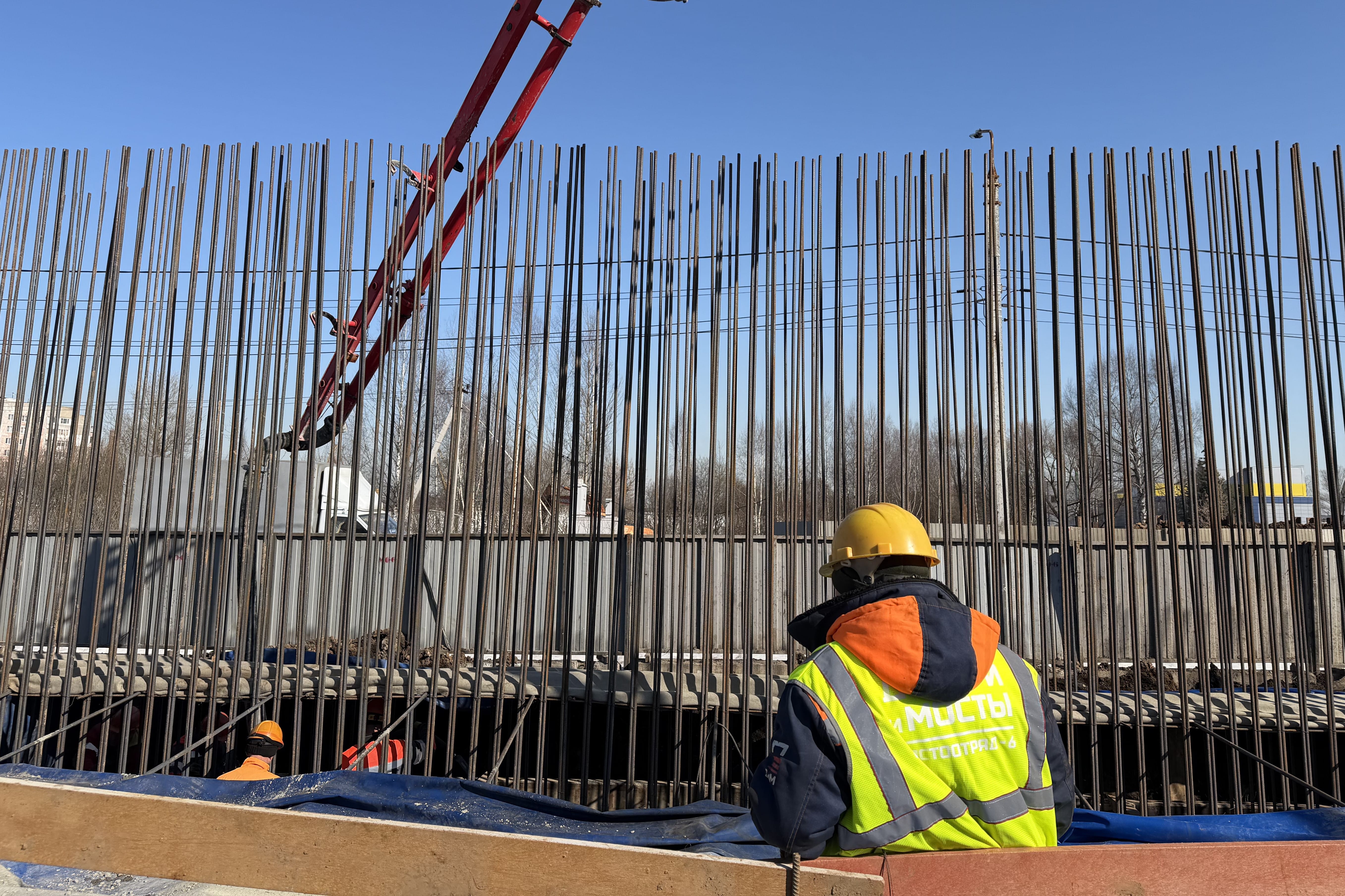 Строители уже приступили к бетонированию ростверка первой опоры — завершающей части фундамента эстакадной части. После его устройства можно будет переходить к возведению самой конструкции сооружения.
