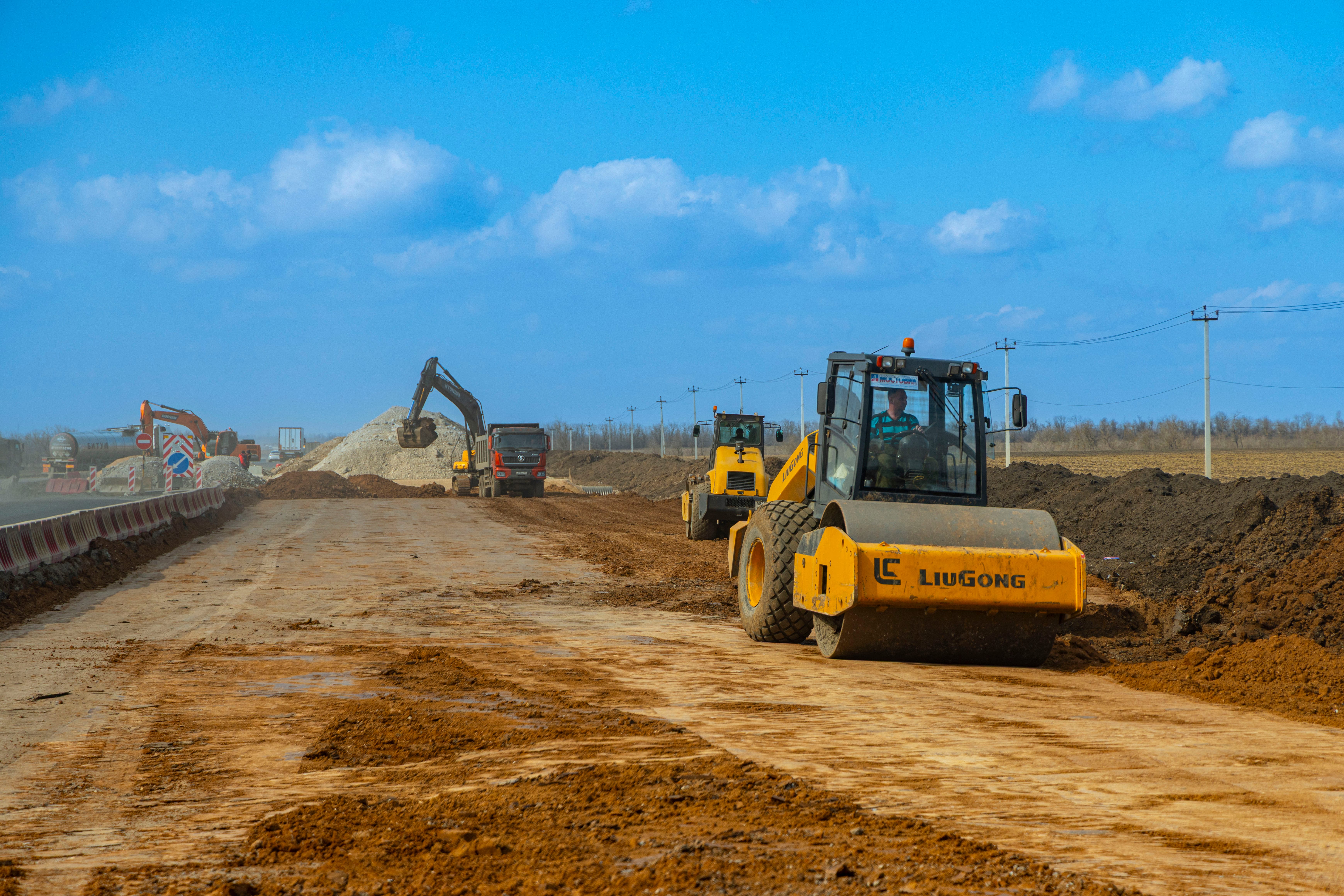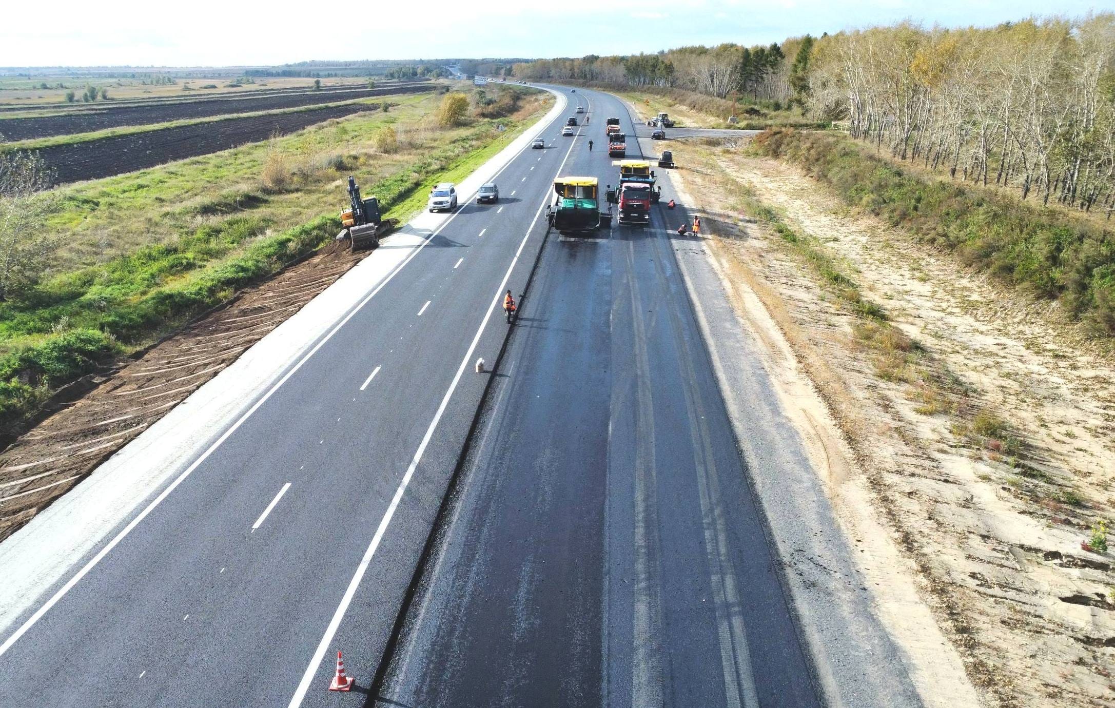 Дорожники уже завершили подготовительный этап и приступили устройству основного хода дороги. Также на отдельных участках ведется укладка асфальтобетонных слоев дорожной одежды будущей четырехполосной дороги.