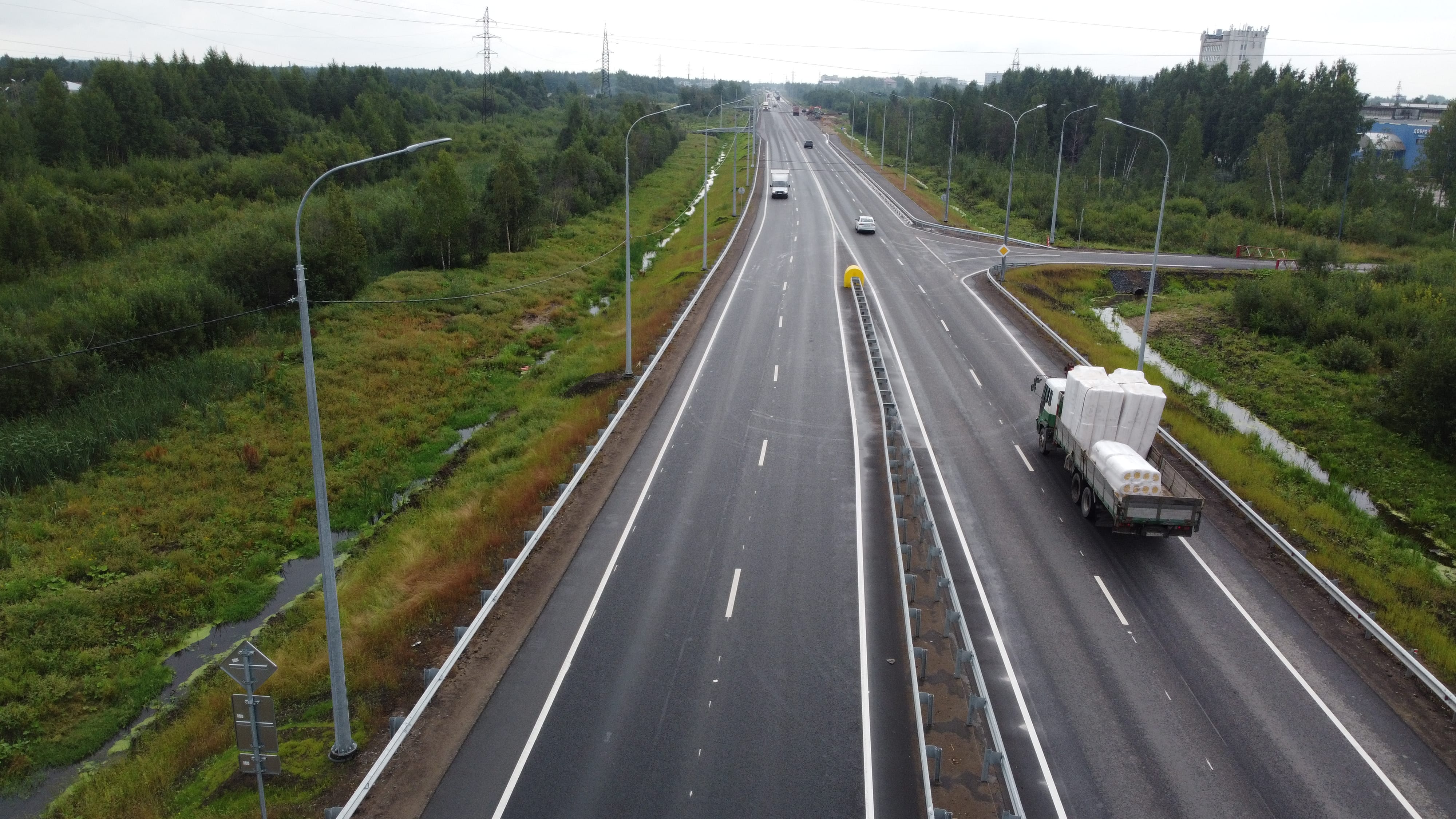 В ходе реализации проекта помимо расширения проезжей части с двух до четырех полос движения здесь устроят барьерно-осевое ограждение, разделяющее транспортные потоки и ликвидирующие самый опасный вид ДТП – лобовые столкновения. Также на всем протяжении объекта будет смонтировано стационарное электроосвещение.
